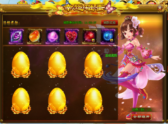 每个玩家都有一次免费的砸蛋机会,砸开金蛋既有机会获得精美好礼。
