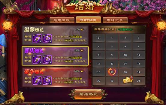 2. 热闹度达到一定的值,都会向全体参加宴会的玩家发放一份婚宴红包,内含大量元宝奖励