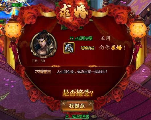 4.求婚后,女方将看到求婚页面,同意求婚则进入婚礼预约步骤,拒绝求婚则很遗憾错过本次姻缘;