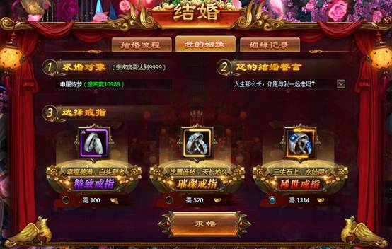 2.结婚双方需处于组队状态;只允许男性向女性求婚,美女尽情展示自己的魅力吧!